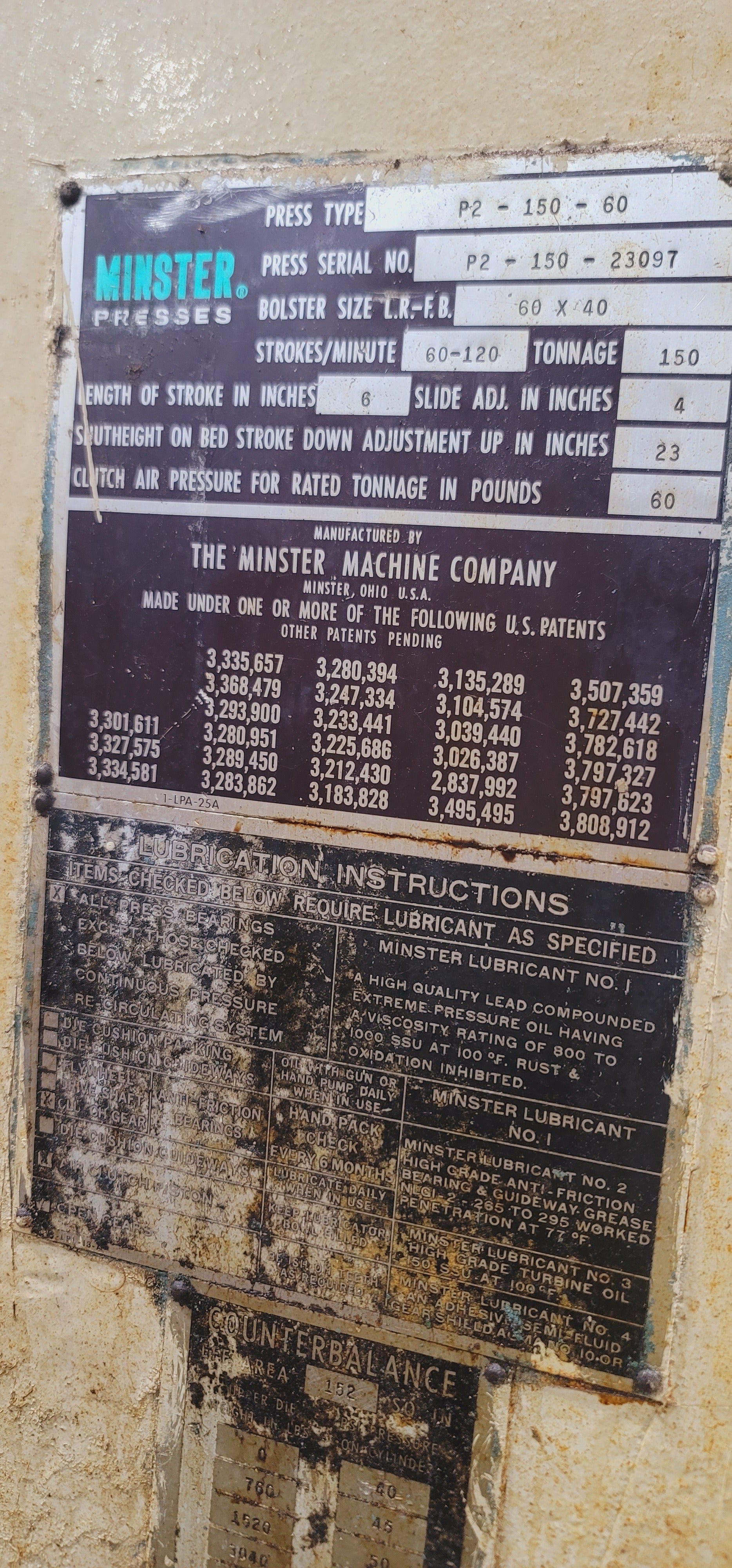 150 Ton Minster Piece Maker Press For Sale
