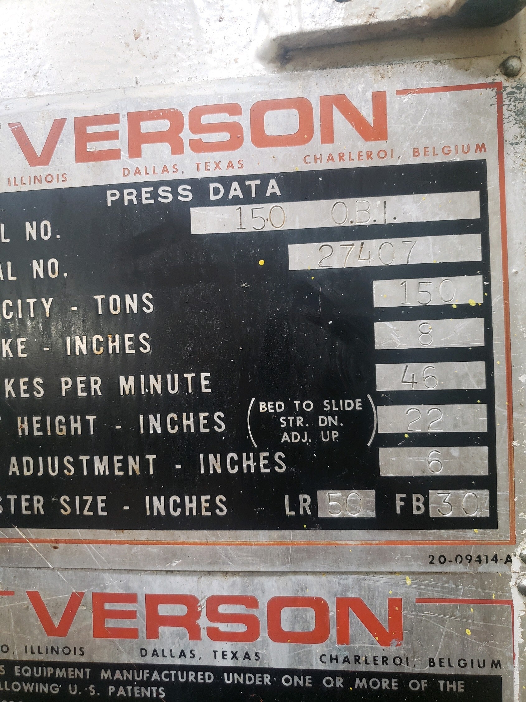 150 Ton Verson O.B.I. Press For Sale