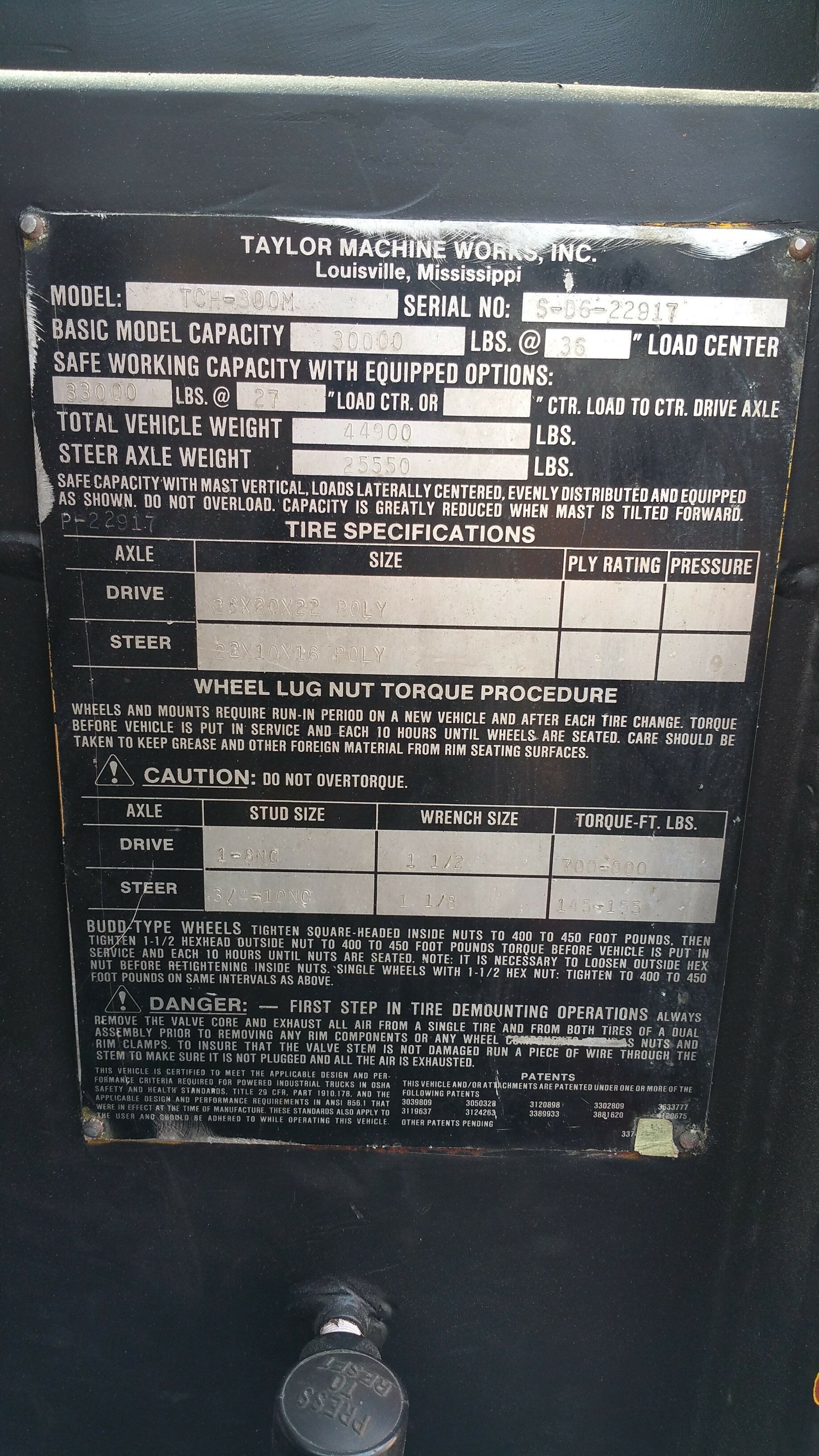 30,000lb. Capacity @ 36" Load Center Taylor Hard-Tire Forklifts (3 Available)! 15 Ton